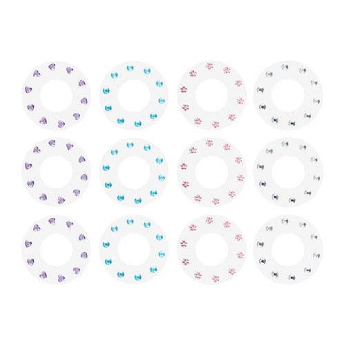 I pakken finder du 180 akrylatkrystaller i nuancerne pink, lilla, blå og sølv og i populære former som hjerter, stjerner, cirkler og diamanter. Den sikre udformning uden skarpe kanter er skånsom mod hår og tekstiler og opfylder standarderne CE / EN 71.