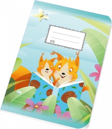Det populære skolehæfte i A5 med egern-motiv er et glimrende valg til skoleelever. Takket være 12 mm linjer egner det sig både til begyndere og til daglige noter. Hæftet har 10 ark (20 sider), er let og passer nemt i enhver skoletaske.