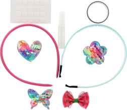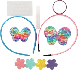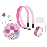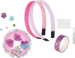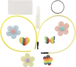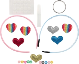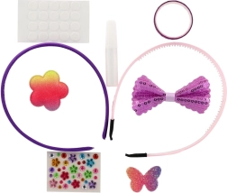 Lav dine egne unikke hårbøjler med dette legende sæt til børn fra 5 år. Pakken indeholder 2 basis-hårbøjler og forskellige pynteelementer – glitrende applikationer, små sten, selvklæbende prikker og lim – alt til nem kreativ leg. Fremstillingen er nem, sjov og udvikler fantasi, kreativitet og finmotorik.