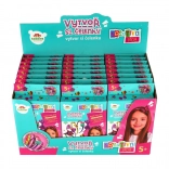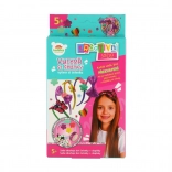 Dette kreative sæt lader børn designe og dekorere deres egne hårbøjler efter humør. Hver pakke er en lille overraskelse – en blanding af farver, former og tilbehør giver altid nye idéer og originale kombinationer. Takket være de selvklæbende prikker og den medfølgende lim er processen nem og ren, så selv yngre børn kan gå til værks med glæde.