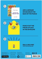Et originalt gavepuslespil med motiv fra en byggeplads, der kombinerer sjov puslespilslægning og et fødselsdagshilsen i ét. Indeholder 12 brikker, på bagsiden kan du skrive en personlig hilsen, skil puslespillet ad og læg det i den medfølgende kuvert med selvklæbende folie. En fantastisk måde at støtte børns fantasi og kreativ leg.