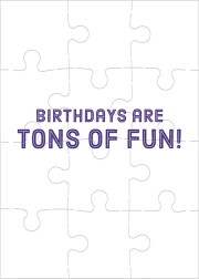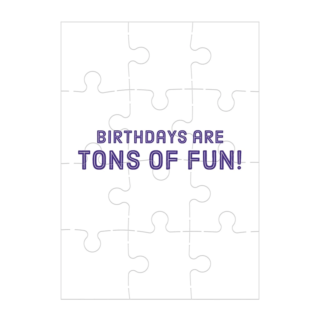 Dette opfindsomme puslespil med hilsen er ideelt til at give en fødselsdagshilsen på en original måde. Skriv din hilsen på bagsiden af puslespillet, læg brikkerne i kuverten, og fødselaren får en kær overraskelse under lægningen – når det er samlet, kan vedkommende læse din personlige besked.