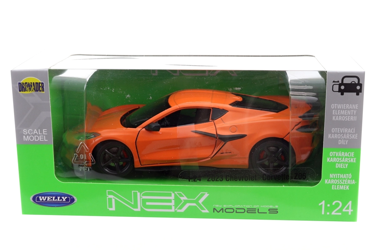 Præcise linjer, skarpe kanter og trofaste proportioner på CORVETTE Z06-modellen fremhæves både ved udstilling og leg.