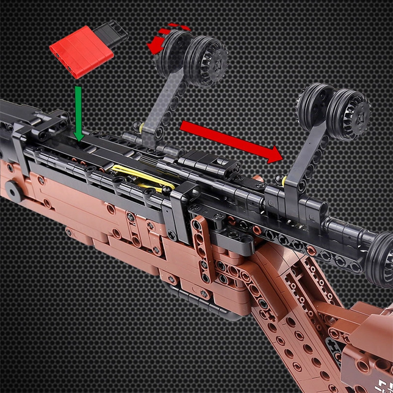 Dette kvalitetsbyggesæt lader dig samle en lang riffel inspireret af den ikoniske Mauser 98K. Takket være den gennemtænkte konstruktion af stærke plastdele får du et imponerende samlerstykke med autentiske detaljer – fra skæfte og løb til sigtemidler. Modellen er beregnet til mere erfarne byggere fra 14 år.
