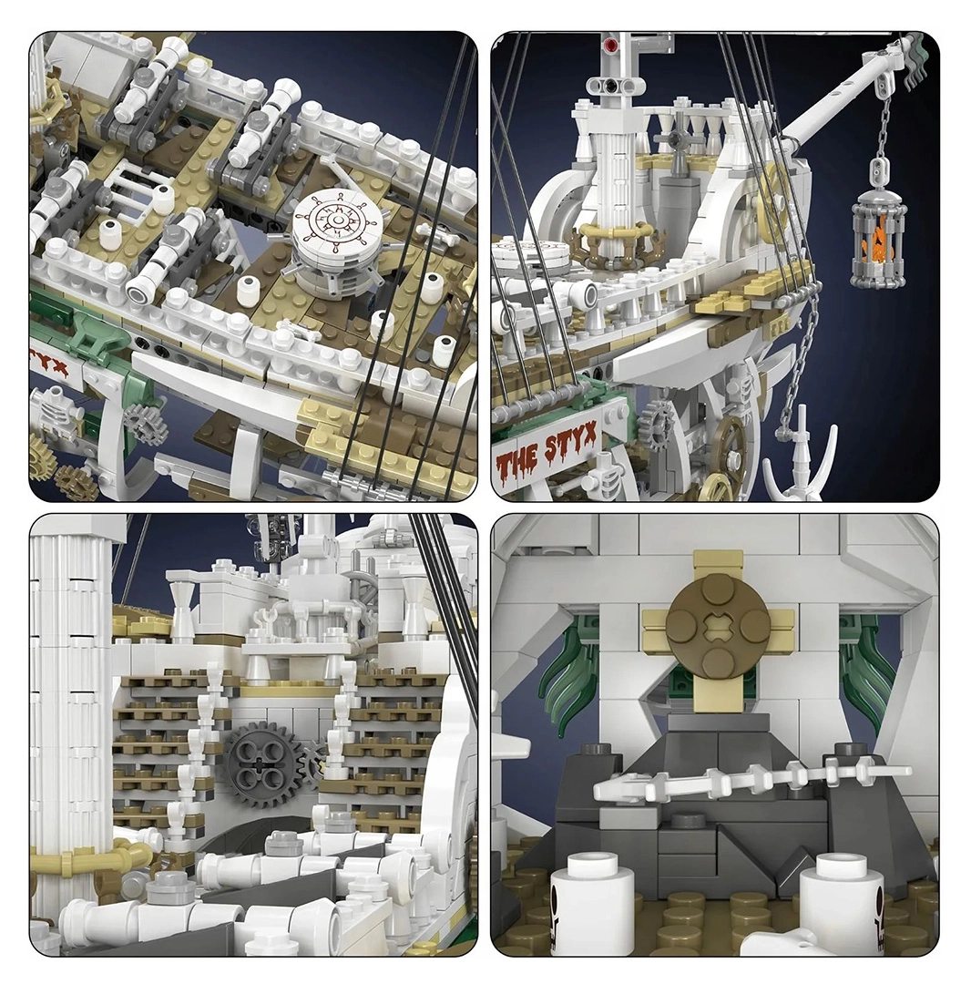 Skab dit eget legendariske fartøj – piratskibet Spøgelse, der imponerer med raffinerede elementer og en imponerende størrelse. Modellen skiller sig ud med et mørkt, majestætisk udseende og en mængde realistiske detaljer, som understreger stemningen i piraternes verden.