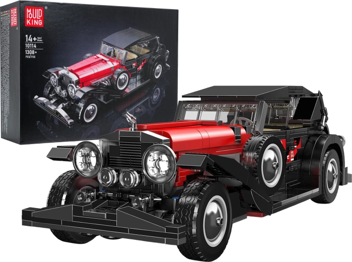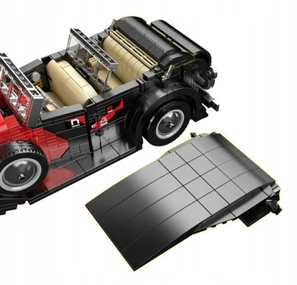 Denne detaljerede model af en historisk bil i en elegant sort-rød kombination vil glæde enhver elsker af klassiske biler og byggesæt. Den robuste konstruktion, tro silhuet og gennemtænkte interiør- og eksteriørelementer sikrer en tilfredsstillende byggeoplevelse og en imponerende udstillingsgenstand.