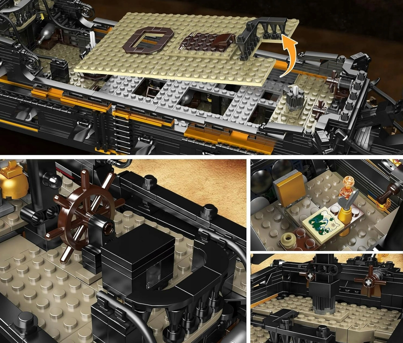 Dette store piratskibsbyggesæt vil glæde enhver fan af krævende byggeri og elskere af maritime modeller. Af 3180 præcist udformede klodser bygger du et imponerende sort skib med mange autentiske detaljer, der gør sig bemærket både på hylden og under leg.