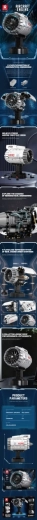 Modellen er udstyret med en 7,4 V akkumulator og en batteriboks, som sætter motoren i bevægelse. Ideel som et pædagogisk byggesæt for større børn og voksne, der vil forstå principperne bag en jetmotors funktion og samtidig nyde sjov samling.