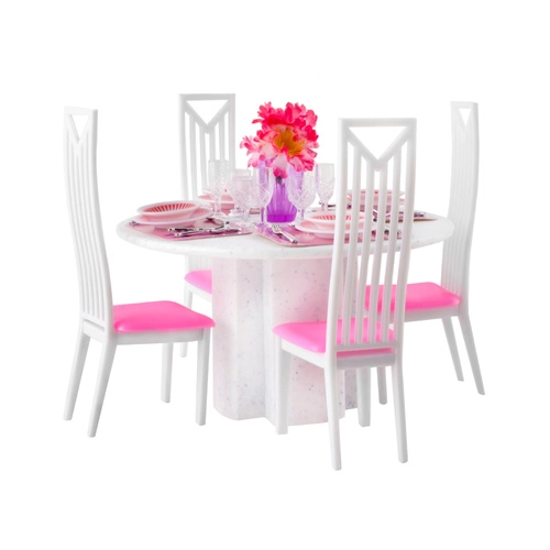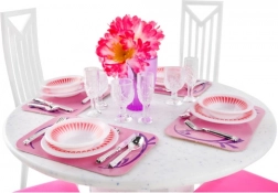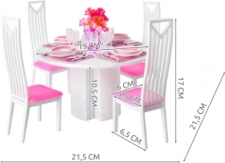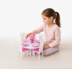 Denne elegante spisestuesammensætning til dukker bringer realistisk servering i miniature – fra tallerkener og bestik til glas og blomsterdekoration. Børn dækker let op til fire dukker og finder på utallige historier. Den lette og stabile konstruktion i holdbar plast sikrer lang levetid selv ved daglig leg.