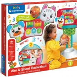 Oplev glæden ved bevægelse med den interaktive basketballkurv CLEMENTONI Baby. Børn træner hånd-øje-koordination og finmotorik, når de kaster bolden, mens lys- og lydeffekter motiverer dem til flere forsøg. Kurven er ideel til de første sportsoplevelser og legende læring af tal og ord.