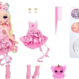 Oplev magisk leg med dukken Rainbow High Bella i pink! Sættet indeholder gennemsigtigt slim og 4 typer glimmer, som du kan blande for at skabe unikke effekter. Læg slimet i dukkens gennemsigtige ben og se den fortryllende forvandling. Sættet fuldendes af et stilfuldt outfit, sko, øreringe og et magisk kæledyr – for endeløs kreativ påklædning og styling.