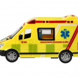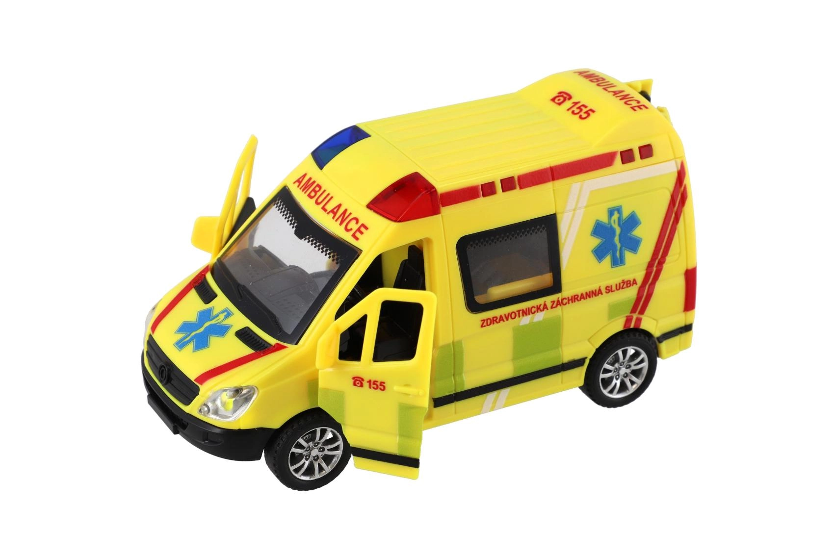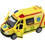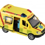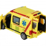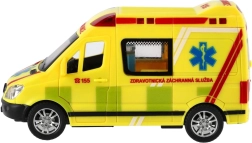 En plastik-ambulance på 14,5 cm vil glæde alle små redningsfolk. Takket være friktionsmotor er det nok at skubbe bilen let, så kører den selv fremad. Realistiske lys- og lydeffekter samt åbnebare døre understøtter kreativ leg og fantasi. Velegnet til børn fra 3 år.