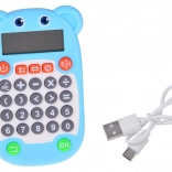 Interaktivt matematisk spil for børn i form af en sød blå lommeregner med bjørne-design hjælper med at træne hurtig hovedregning, hukommelse og logisk tænkning. Den tilbyder forskellige typer opgaver (addition, subtraktion, multiplikation, division), 3 sværhedsgrader, tidsbegrænsninger samt lyd- og visuel feedback. Takket være opladning via USB er den sikker og velegnet både hjemme og på farten.