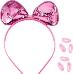Stilfuldt rosa tilbehørssæt til små modeentusiaster indeholder børnebriller i et legende design, et hårbånd med stor sløjfe og 6 hårelastikker. Den lette og sikre konstruktion er ideel til daglig brug, rollespil som stylist og prinsesseudklædning.