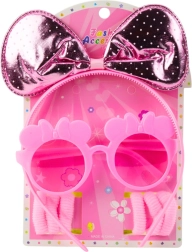 Det søde rosa tilbehørssæt styrker børns kreativitet og fantasi. Det komfortable hårbånd tilpasser sig fint til barnets hoved, brillerne har en let og sikker udførelse, og elastikkerne holder pålideligt både enkle hestehaler og kreative frisurer.