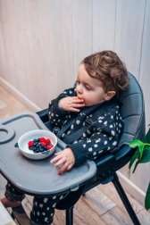 MoMi REKI er en alsidig højstol til børn, der tilpasser sig enhver vækstfase. Takket være de 3 anvendelsestilstande skifter du nemt fra fodring med bakke til komfortabel siddestilling ved familiens bord og senere til en lav stol til leg og kreativ udfoldelse. Det minimalistiske design og de dæmpede farver passer ind i enhver indretning.