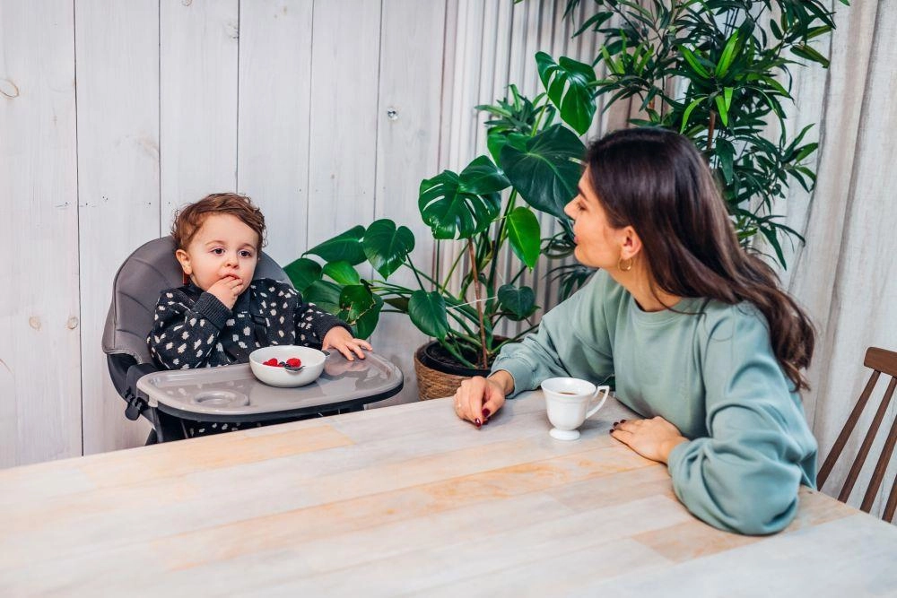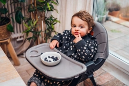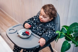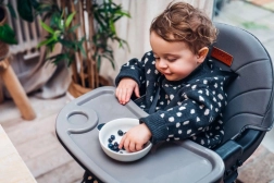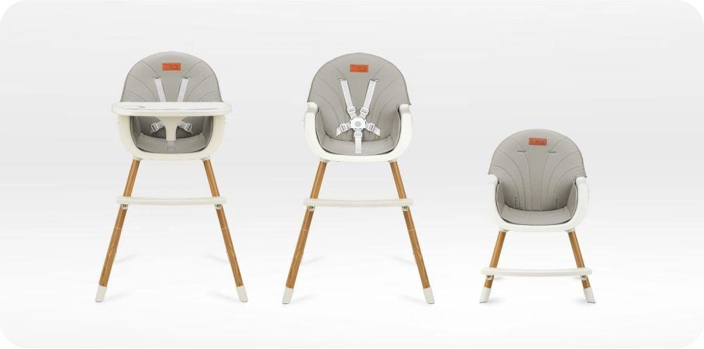 Én stol til hele perioden fra de første måltider til førskolealderen: med bakke til de første fodringer, uden bakke ved spisebordet og som lav stol til leg og kreativitet.