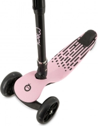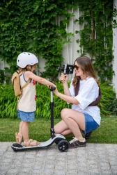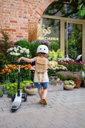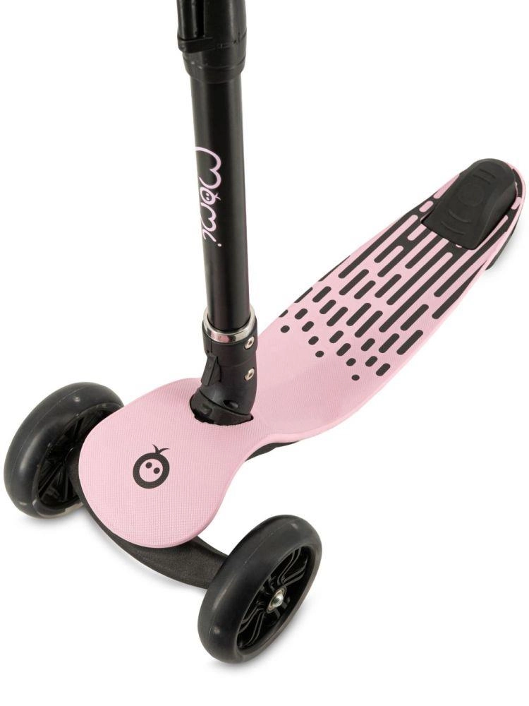 MoMi San er det ideelle første løbehjul til at udvikle balance og køresikkerhed. Den trehjulede konstruktion med to forhjul og ét baghjul giver fremragende stabilitet, mens den brede skridsikre platform og de komfortable greb bidrager til sikker håndtering. LED-hjulene lyser under kørsel og giver både sjov og bedre synlighed.