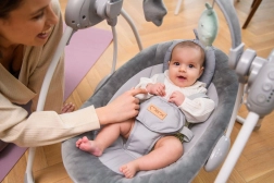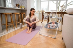Blød polstring, støtte til hovedet og 5-punkts seler med bred skridtstrop sikrer komfort og sikkerhed ved hver gyngetur.