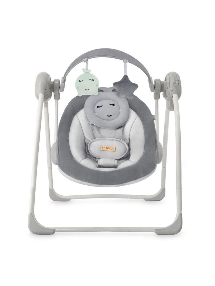 Nyd et øjebliks ro, mens din lille hviler komfortabelt i gyngestolen MOMI Liss. Takket være den elektriske drift og fem gyngeniveauer kan du nemt tilpasse rytmen til babyens humør. En timer giver automatisk slukning efter 10, 15 eller 30 minutter, og 6 behagelige melodier sørger for blid akustisk beroligelse.