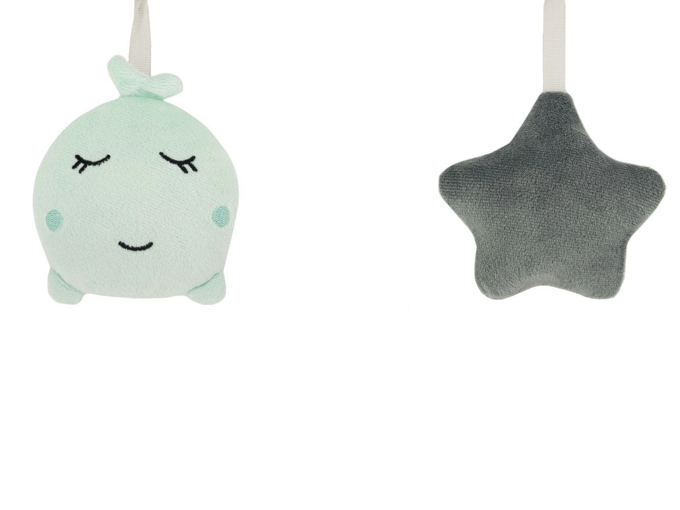 To hængelegetøj opmuntrer til udforskning, og de behagelige melodier hjælper med at berolige og underholde babyen.