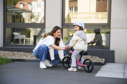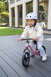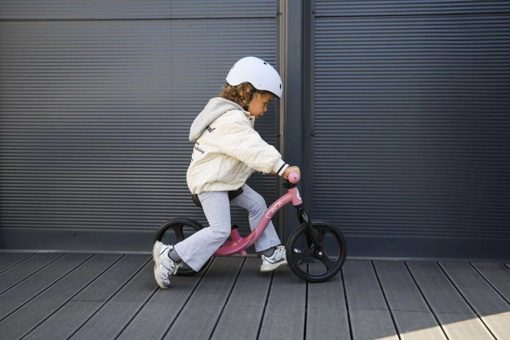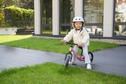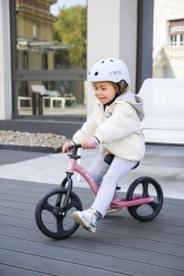 Hurtig højdejustering af saddel og styr gør det nemt at tilpasse løbecyklen til barnets vækst og sikre korrekt ergonomi.