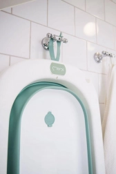 MoMi NATA er en smart og pladsbesparende løsning til den daglige babybadning. Badekarret foldes på et øjeblik til en flad form, så det næsten ikke fylder og nemt kan opbevares selv i et mindre badeværelse. Det integrerede øje gør det muligt at hænge det op for hurtig tørring og praktisk opbevaring.