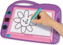 Den magnetiske tegnetavle fra CLEMENTONI giver børn uendelig plads til fantasi. Takket være den skydende slettegummi kan billeder straks slettes og skabes igen og igen – uden papir og uden rod. Den lette konstruktion med integreret håndtag gør den nem at tage med, så børn kan tegne hvor som helst.