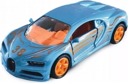 Detaljeret model af supersportsvognen BUGATTI Chiron i skala 1:50, som begejstrer både samlere og små entusiaster. Kombinerer metal og plast for høj holdbarhed, tilbyder åbningsbare døre, gummidæk for jævn kørsel og et iøjnefaldende design i elektrisk blå med orange interiør.