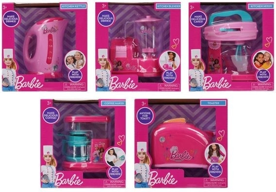 Vælg mellem forskellige typer apparater som kaffemaskine, brødrister, blender eller elkedel. Hvert sæt er designet til at være let for børn at betjene og samtidig visuelt attraktivt – præcis i den ikoniske BARBIE-stil.
