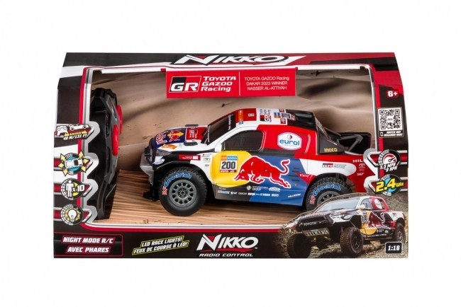 Oplev spændende kørsel inspireret af DAKAR-rallyet. R/C-bilen Toyota Dakar i skala 1:18 kombinerer realistisk udseende, pålidelig ydeevne og nem betjening. Forreste LED-lys forbedrer synligheden, gummidæk giver godt greb, og det robuste karrosseri klarer let terræn.