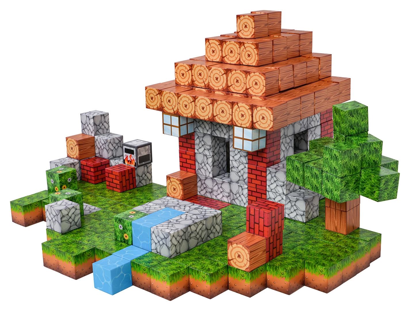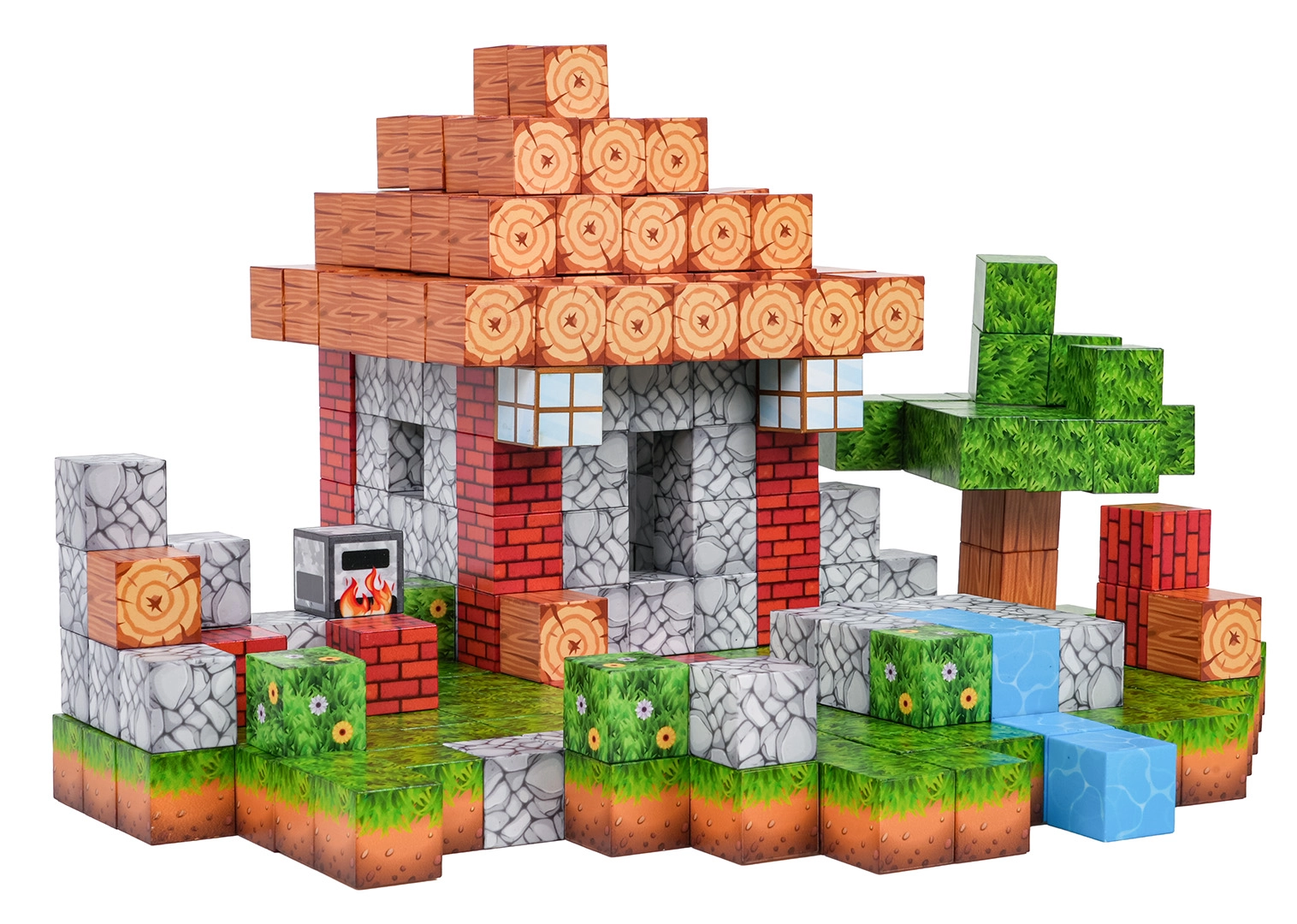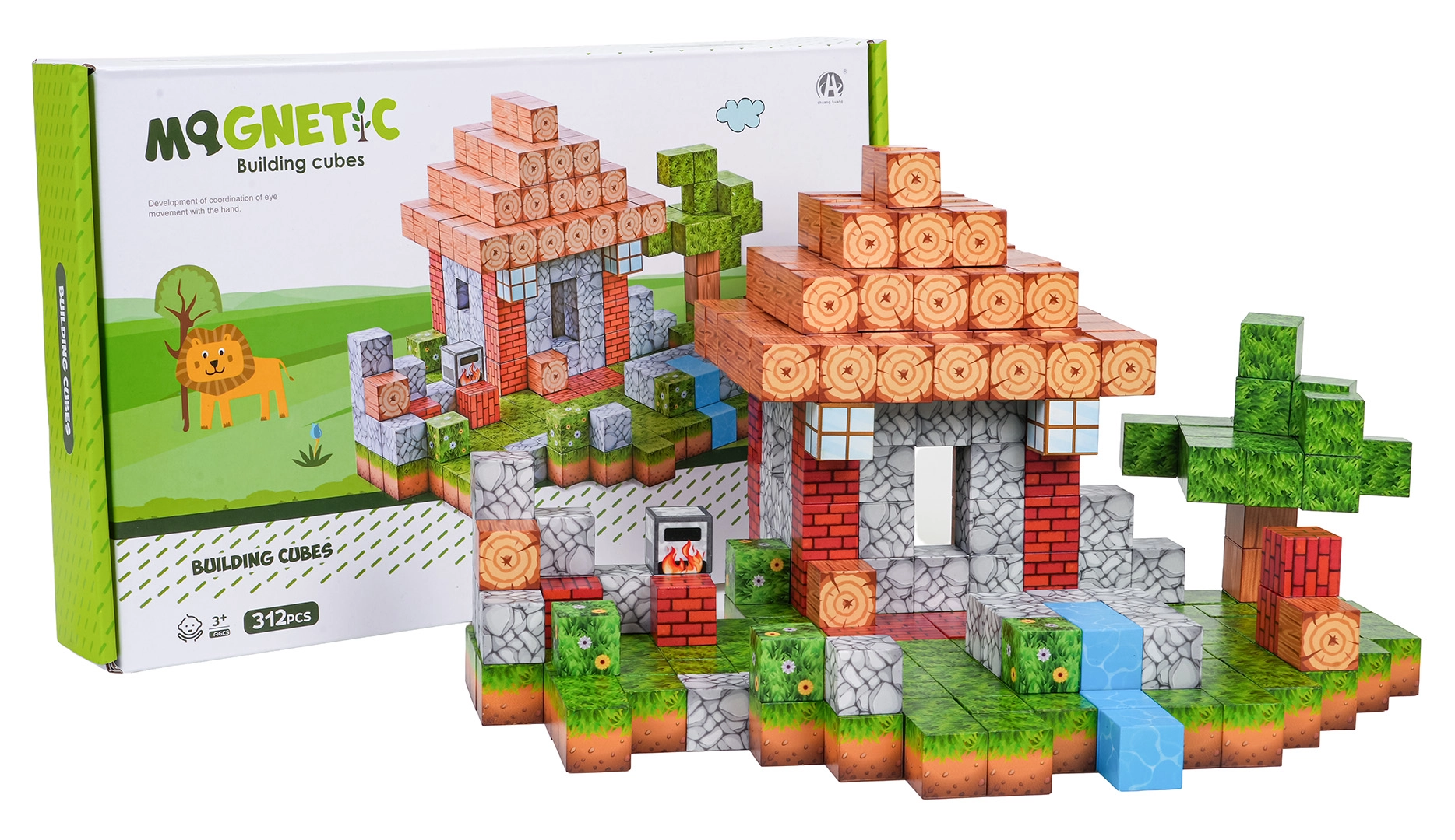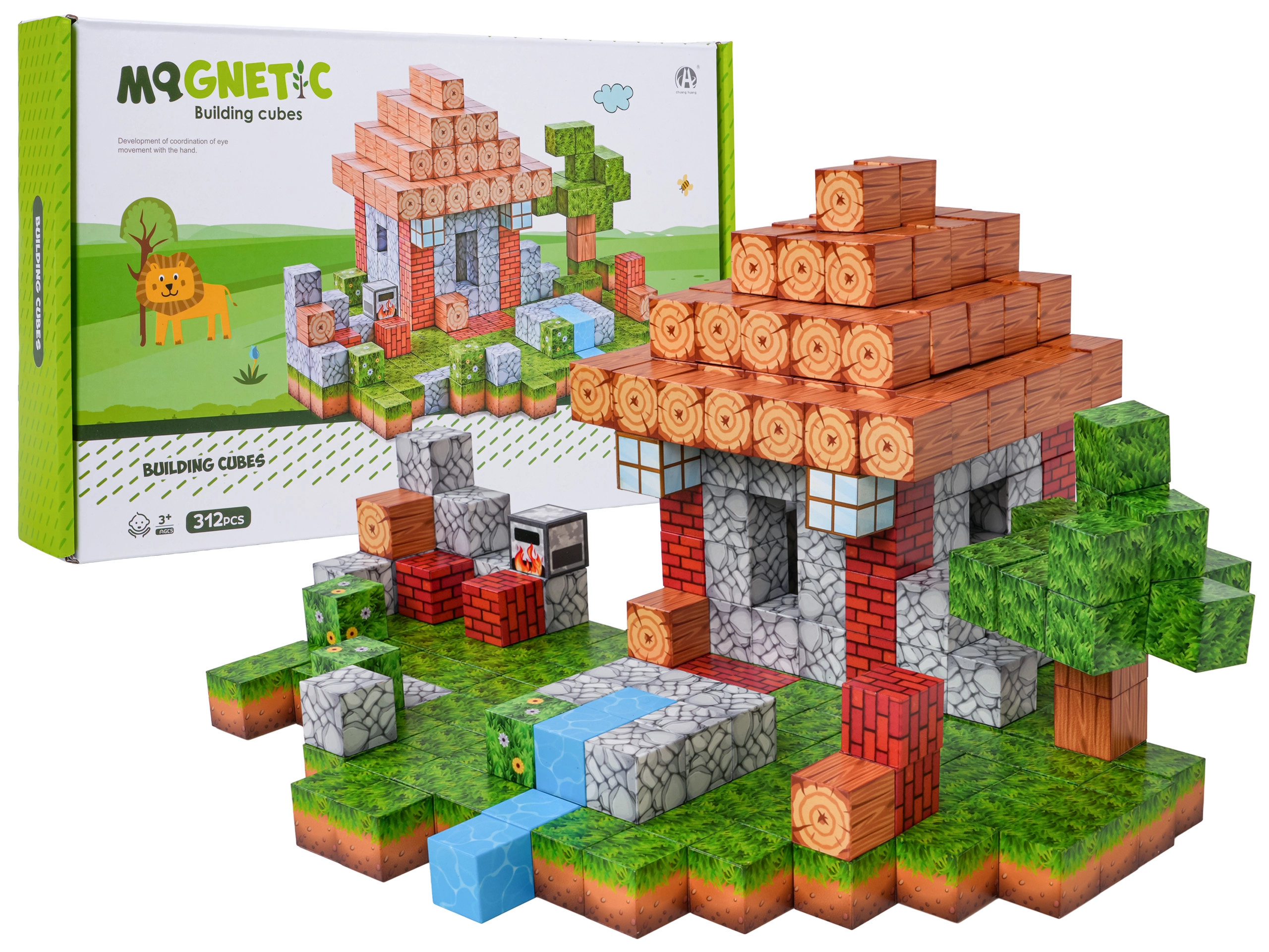 Dette omfattende sæt magnetiske klodser tilbyder 312 dele med realistiske overfladetryk såsom træ, sten, græs og vand. Børn kan nemt skabe små huse, træer, bække og hele pixellandskaber og bygge dem om når som helst. Stærke neodymmagneter holder elementerne solidt sammen, så konstruktionerne er stabile og sikre.