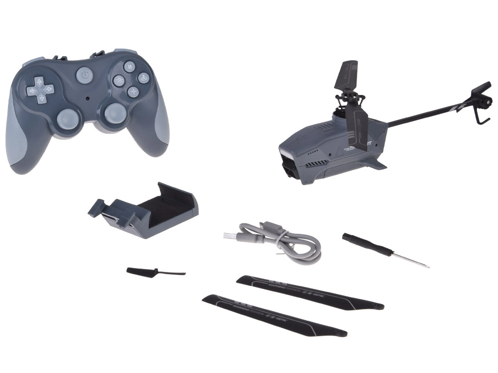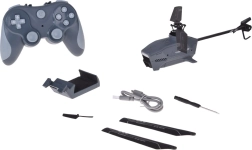 Betjeningen er intuitiv – med den ergonomiske fjernbetjening letter, lander og ændrer du retning uden besvær. Takket være USB-opladning kan du nemt oplade batteriet fra computer, adapter eller powerbank. Sættet indeholder udskiftelige rotorblade og en skruetrækker til enkel vedligeholdelse.