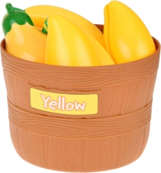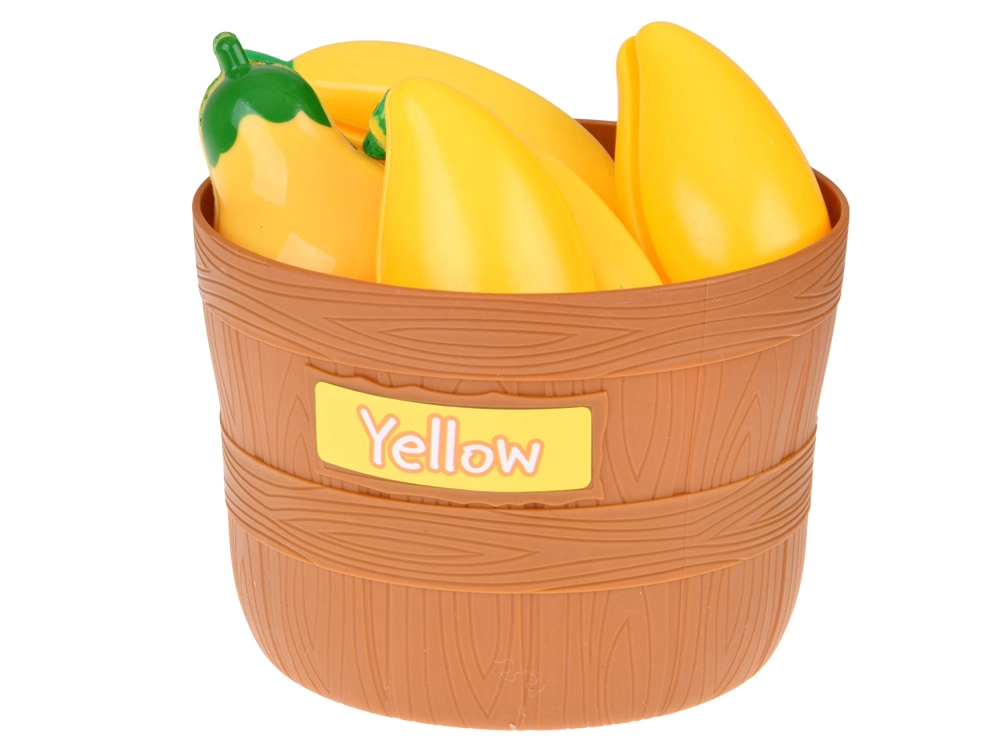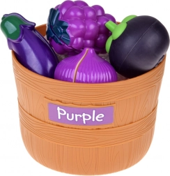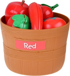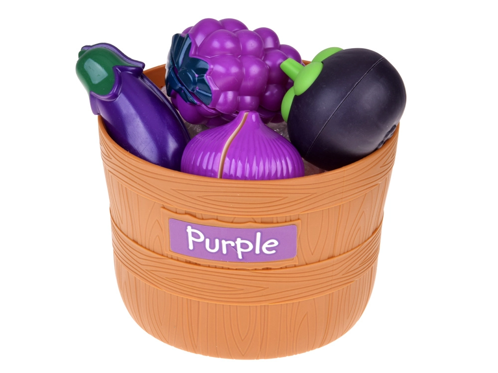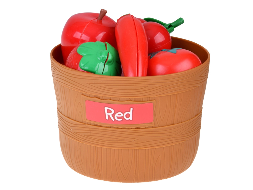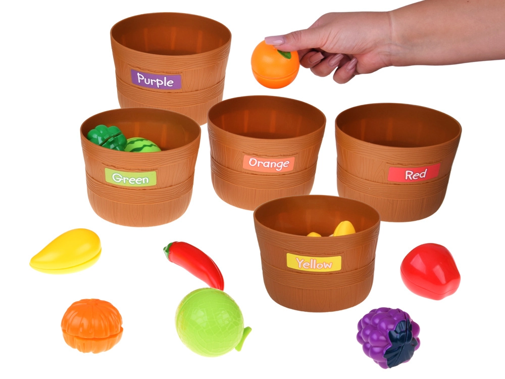 Fem kurve med farvede etiketter motiverer børn til at sortere mad efter farve. Et fremragende grundlag for tidlig sansning og udvikling af logik.