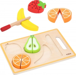 VIGA træfrugtsæt til at skære er et fremragende supplement til børnekøkkenet. Farverige, robuste frugter holdes sammen af velcro, som giver behagelig modstand og en realistisk følelse ved skæring. Børn kan trygt afprøve madlavningsfærdigheder og samtidig udvikle fingerfærdighed og fantasi.