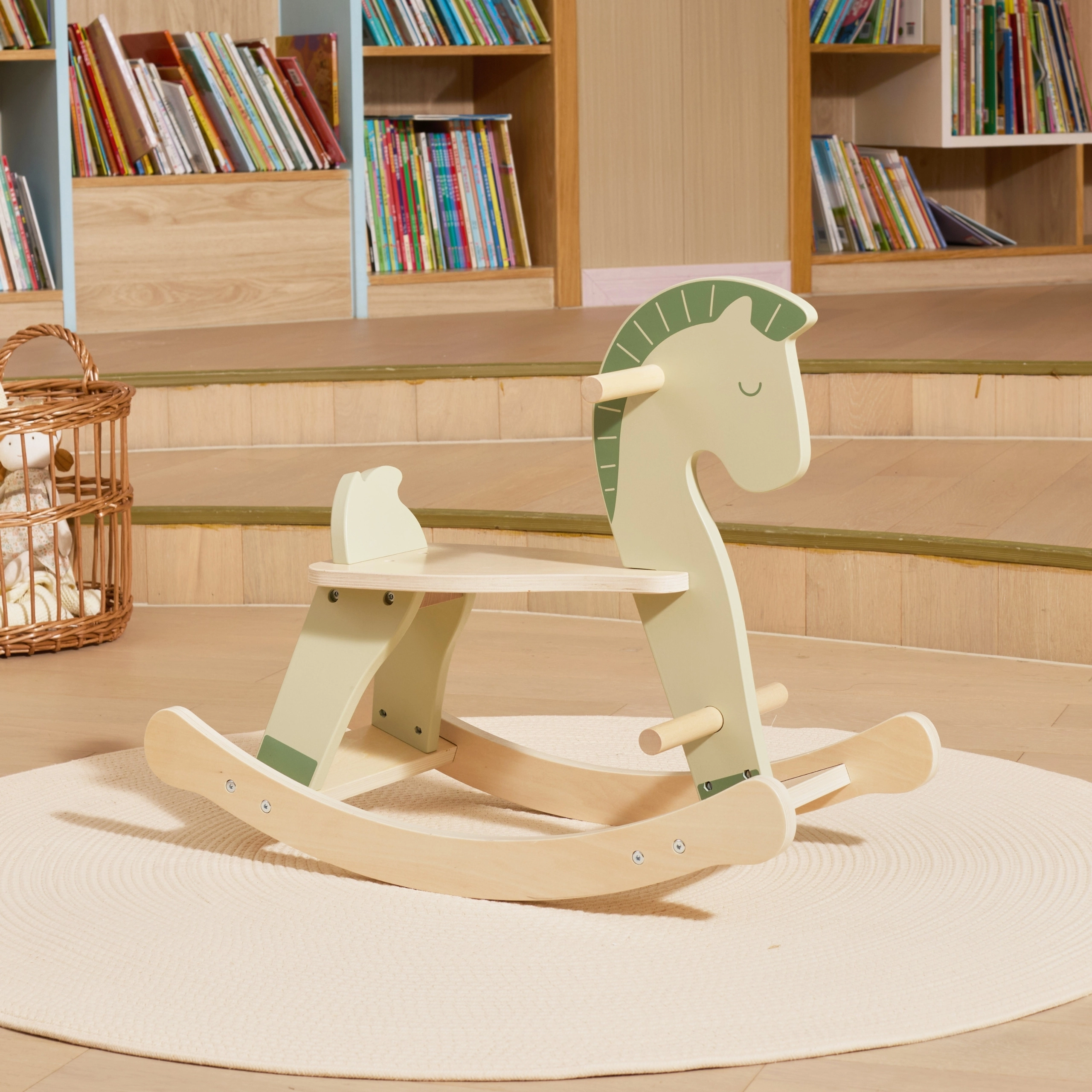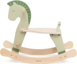 Denne træ-gyngehest i en blid pastelgrøn farve er en fantastisk ledsager til de første ture derhjemme. Den støtter naturlig udvikling af balancen, motorikken og selvtilliden hos barnet. Med solide håndtag og fodstøtter føler børn sig trygge og sikre, mens de glat formede meder sikrer en jævn og stabil gyngning.