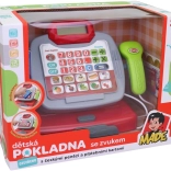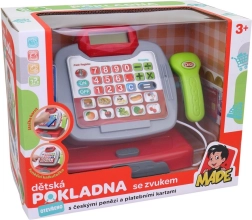 Et børnekasseapparat med tjekkisk design, der vil glæde alle små butiksassistenter. Det byder på lys- og lydeffekter, en funktionel scanner til prisindlæsning, en digital lommeregner og rigt tilbehør inklusive tjekkiske papirpenge, betalingskort og plastmønter. Strømforsyning via 2× AA-batterier (inkluderet). Velegnet til børn fra 3 år.