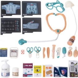 I pakken finder du 26 dele, herunder stetoskop, termometer med temperaturindstilling, sprøjte, skalpel, pincet, saks, neurologisk hammer, spejl og andre accessories. Praktiske rum og døre giver organiseret opbevaring af alle redskaber, så alt altid er lige ved hånden. Holdbare, sikre materialer er tilpasset børn fra 3 år.