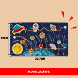 Opdag universet på en legende måde med det træbaserede montessori-puslespil “Solsystemet” fra KRUZZEL. Interaktiv planetlabyrint med raket, som støtter finmotorik, logisk tænkning og læring om planeter. Kvalitets fyrretræ, glatte kanter og holdbar udførelse sikrer sikker og sjov leg for børn.