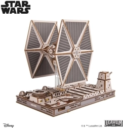 Fans vil glæde sig over det detaljerede cockpitinteriør, bevægelige laserkanoner og farvet krydsfiner, der giver modellen et realistisk udseende. Samlingen foregår uden lim og værktøj, og den mellem-svære sværhedsgrad gør det til et sjovt projekt for mere erfarne byggere. Modellen er kompatibel med Luke Skywalkers X‑Wing-jager fra Ugears – soklerne kan forbindes og skabe en intens scene fra Dødsstjernen.