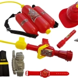 Dette børne-brandmandsæt tilbyder alt, hvad en lille brandmand behøver til spændende redningsleg. Hjelmen med lysdioder sikrer synlighed, vesten med refleksstribe suppleres af en funktionel vandforstøver – det er nok at fylde den med vand og “slukke” små brande. Naturtro kopier af udstyr som walkie-talkie, lommelygte og økse øger den realistiske oplevelse.