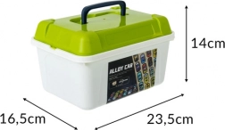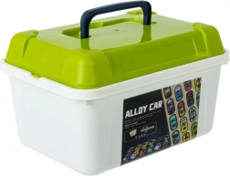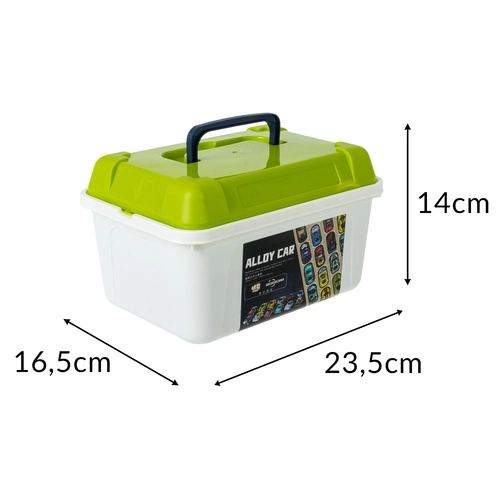 En solid organizer med håndtag holder samlingen samlet, gør det nemt at rydde op og gør det sikkert at tage bilerne med på tur.