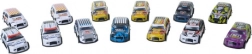 - 50 biler i én pakke: varierede farver, grafik og startnumre.