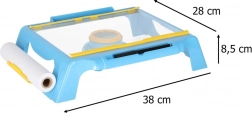Den stabile plastbase med en skrå arbejdsflade og en holder til papirrullen giver børn komfortable betingelser for tegning hjemme og på farten.