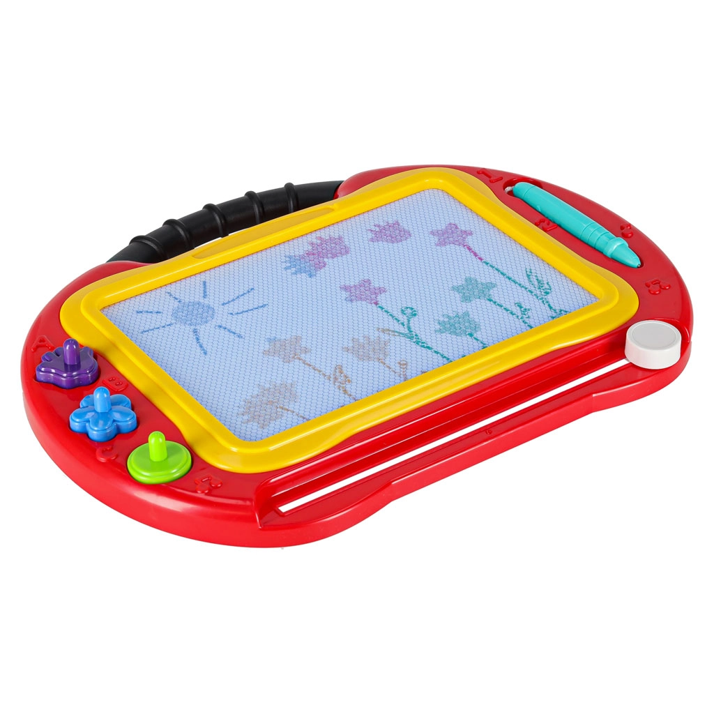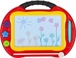 Den magnetiske skærm viser fire farver, og med ét skub af skyderen rengør du den helt. Ideel til uendelig tegning, skrivning og læring.
