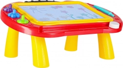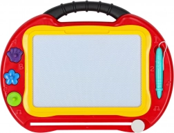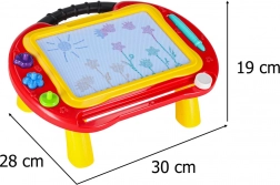 Støt børns kreativitet og finmotorik med den alsidige magnetiske tavle 2-i-1. Den fungerer som et stabilt bord til komfortabel siddestilling og som en let, bærbar tavle med håndtag. Børn kan tegne, skrive deres første bogstaver og tal og bruge stempler i sjove former – helt uden papir og pletter.