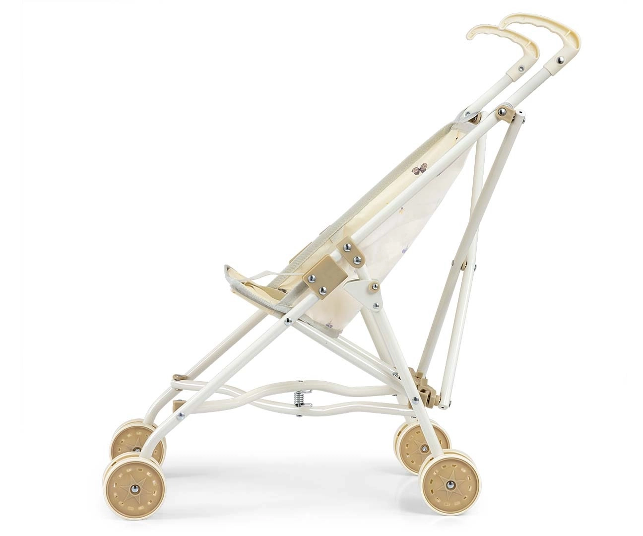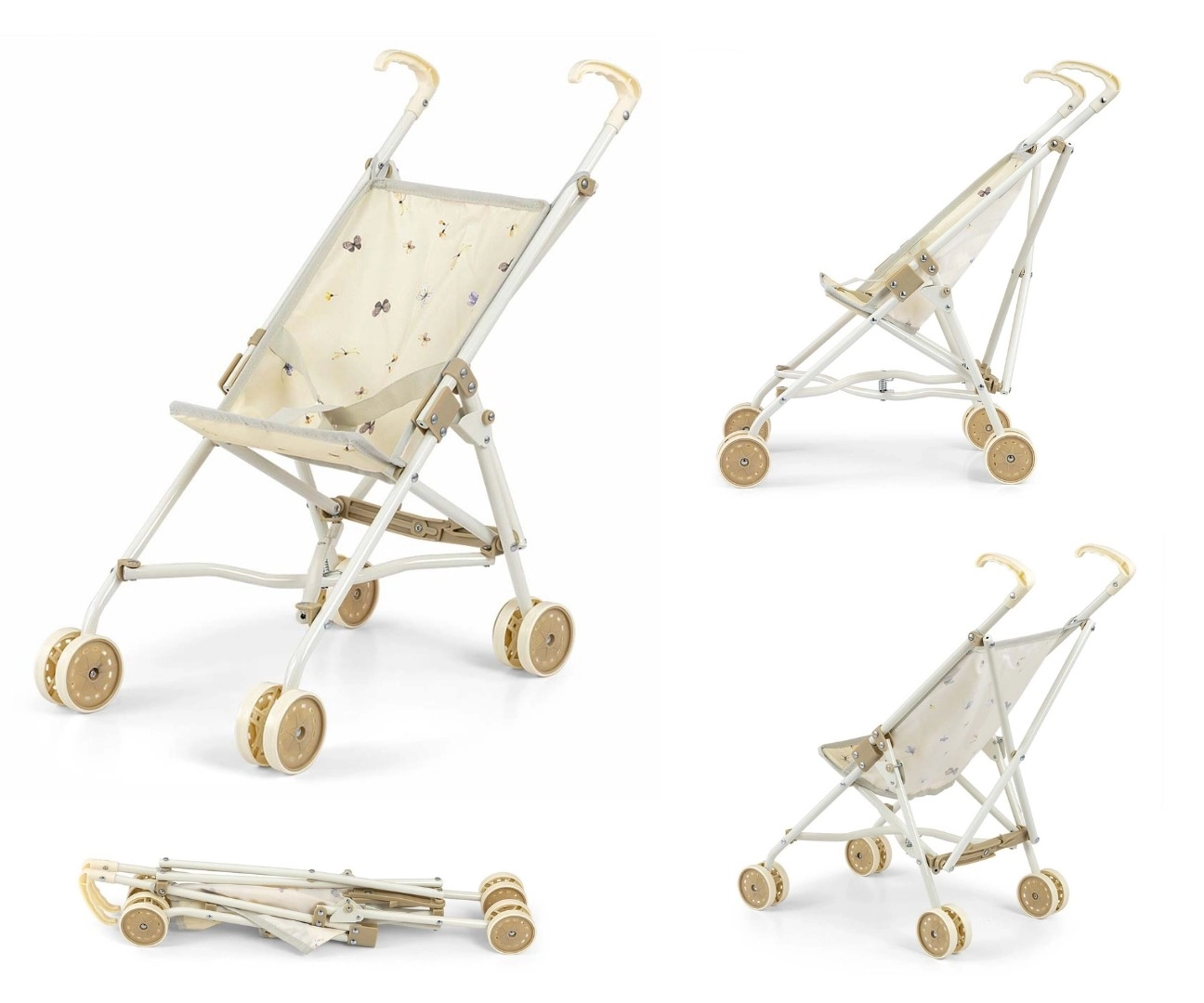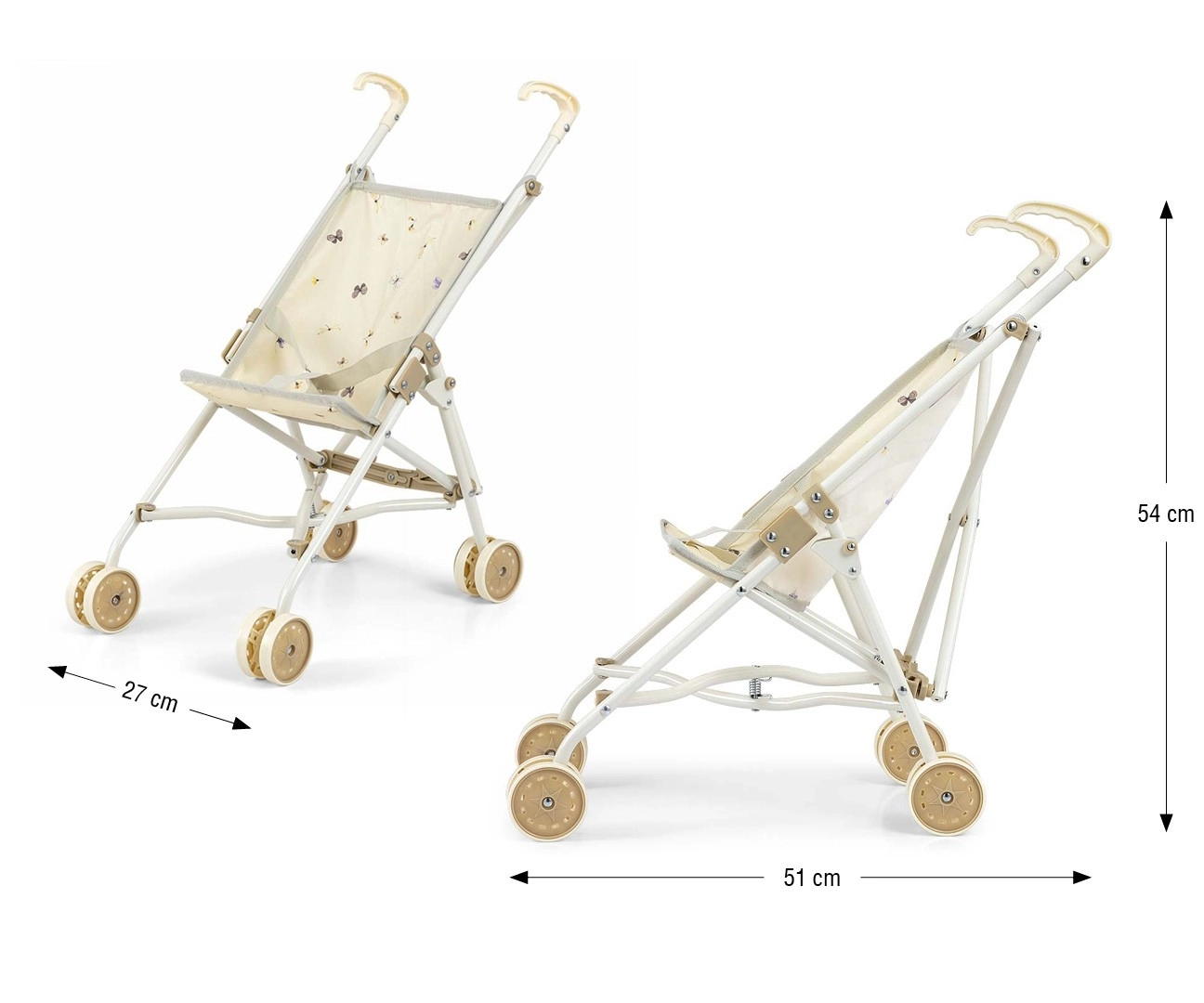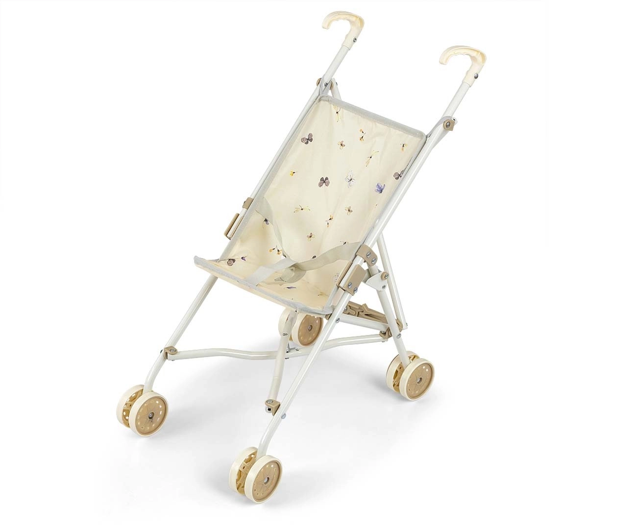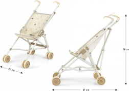 Takket være hurtig paraplysammenklapning kan vognen nemt lægges fladt, så den ikke fylder derhjemme eller på tur. Metalskelettet sikrer styrke, dobbelte hjul giver jævn kørsel, og sikkerhedsselen holder dukken trygt på plads.