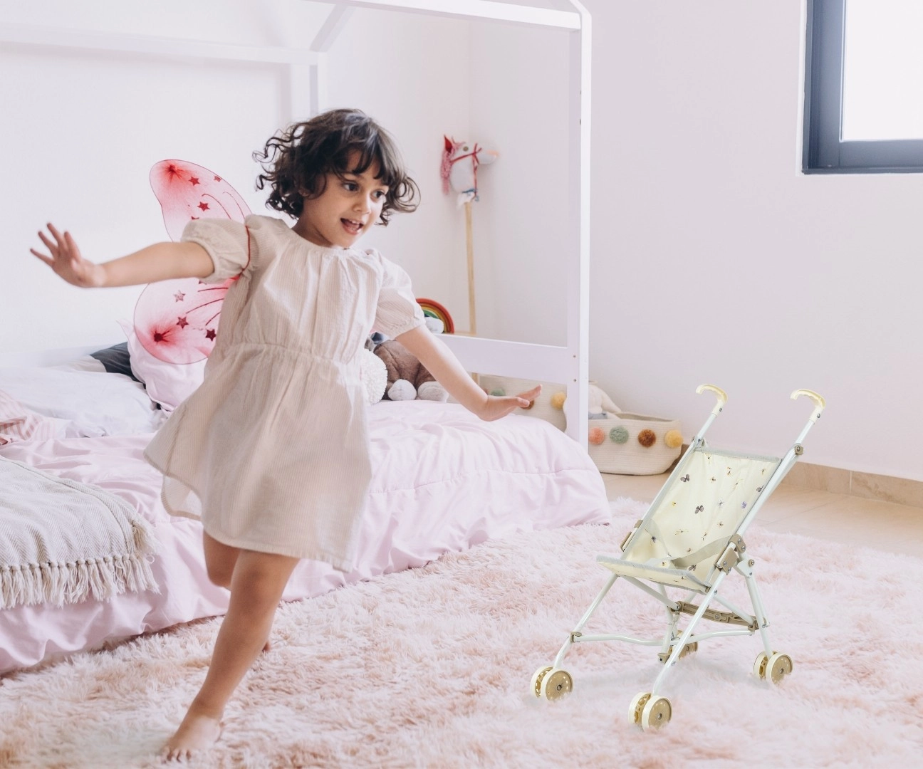 Milly Mally Julia Nature er en sød og robust dukkevogn til dukker op til ca. 50 cm. Konstruktionen inspireret af en rigtig børneklapvogn stimulerer fantasi og social leg, mens den lette og stabile opbygning gør den nem at styre selv for de mindste.