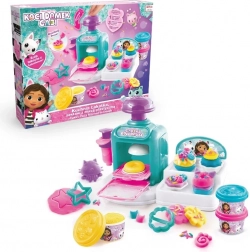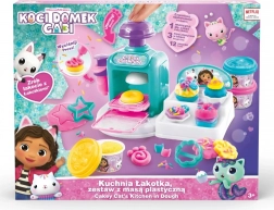 I pakken finder du en maskine til at lave kager, tre bægre modellervoks i forskellige farver og et sæt værktøjer til udstikning, formning og pyntning. Ideelt som gave til alle børn, der elsker at skabe, modellere og universet fra GABBY’S DOLLHOUSE.