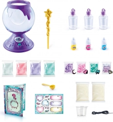 Lav op til 10 fortryllende slim-elisir i en magisk gryde med lys- og tågeeffekter. Følg opskrifterne og bland farveskiftende, selvlysende og boblende eliksirer. Hæld bare pulver i, tilsæt eliksir og dekorationer, rør rundt med den gyldne stav, og opbevar de færdige slimes i stilfulde flasker til halsen.